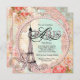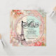 Beautiful pink pearls, lace and Eiffel Tower Paris baby shower invitation. This elegant peach, pink and teal blue Paris baby shower invitation is easily customised for your event.