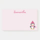 Cute and easy to personalise, these post it notes features a cute penguin in the bottom right corner on a light lavender background. Your name/text is written at the top centre in cute cursive pink font. Order yours today!