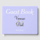 Pretty periwinkle. Personalise bride and groom names in deeper purple text. Guest book and wedding date is written in white text. and date of wedding. Love is written on back. Our Wedding s written on side. Periwinkle is a pretty happy colour in the blue violet family. Original Design by TamiraZDesigns.