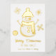 Pretty foil Christmas card that can be personalised with your names and greetings. Gold foil snowman and text on front. Back has photo and text.