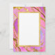 These beautiful baby shower invitations feature a painted geode look background, with various shades of pink and faux gold accents and frame. Trendy modern faux gold script typography also appears.