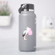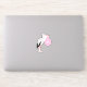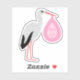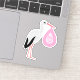 This awesome shaped sticker features a graphic image of a cute white Stork with black tail feathers holding onto a pale pink bundle of blankets. There is pink text on the bundle that says "Baby Girl". This design is perfect for celebrating a baby girl.