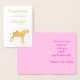 This awesome foil card is for congratulating new parents on the birth of a new baby girl. The design features a digital art image of a pretty magical pink baby girl unicorn. The main body of the unicorn is pink and the mane and tail are two different shades of pink. The unicorn has golden hooves and a bright shiny gold horn on top of its head. It has a pink diamond shaped eye. The unicorn has a big smile on its face. There is custom text on the front and inside making this card fully customisable.