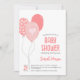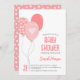 These sweet invitations feature a digitally illustrated bunch of three balloons in shades of pink with polka dots and hearts as decorations.
