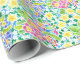 Pretty Pink, Blue, Yellow Primroses Floral Wrapping Paper