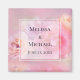 A wedding magnet with a photograph featuring a bouquet of pink carnations. Set on a dreamy ethereal background.
