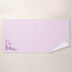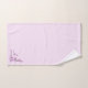 A branch of pretty pink cherry blossoms against a pink background adorns the corners of this bath towel set.