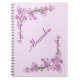 A branch of pretty pink cherry blossoms against a pink background adorns the corners of this notebook.