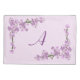 A branch of pretty pink cherry blossoms against a pink background adorns the corners of this pillow case.