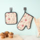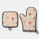 Pretty Pink Cream Roses Floral Oven Mitt & Pot Holder Set