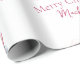 This custom wrapping paper features a pretty pink Nutcracker Christmas theme on a plain white background. Characters from the Nutcracker story are pictured around a pink coloured Christmas tree. The Sugar Plum Fairy ballerina is pictured on the left, and the giant Nutcracker and Mouse King are pictured on the right. A sample "Merry Christmas" greeting is printed above the illustration, followed by a sample name which you can personalise to include your own custom name or text.