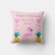 A lovely pink flamingo tropical pillow design, this is a wonderful keepsake pillow for baby. Set upon a light pink background the front has baby's name in fun text. The back has a light pink background with a large pineapple. Personalise your baby's souvenir pillow today!