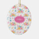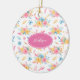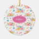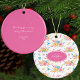 Pretty Pink Floral Custom Greeting Christmas Tree Ceramic Ornament