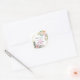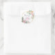Pretty and girly pink, peach and green floral watercolor wreath "thank you" square sticker for a baby shower. This whimsical sticker has a white background and elegant dark grey and hot pink text. Personalise by adding your own name and baby shower date. You can even change the text colour and font style using the customise option.