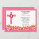 Pretty Pink Flowers & Cross First Holy Communion Invitation