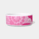 A cute, girly pink pet bowl with an image of bright pink retro flowers and swirling strings of beads. Perfect for a spoiled little girl pet!