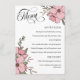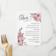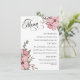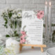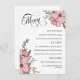 Pink floral wedding menu with a pretty script, elegant fonts, and pink flowers with greenery.