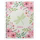 Pretty Pink Flowers With Dragonfly And Name Notebook
