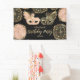 This pretty and modern themed birthday party banner is perfect for the trendy and stylish birthday girl. Its beautiful, unique and elegant design depicts a faux printed gold foil with blush pink hand-drawn masquerade butterfly mask on top of a simple black background. This illustrative drawing is complemented with two floral ornate lace mandalas. This beautiful and one-of-a-kind design is the best choice to make your daughter feel special, sophisticated, and chic for her special day. Her guests will be wowed and her day will be perfect with this luxury and classy banner. Customise the background and font colours by clicking the "customise" for options.