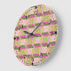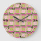 Pretty Pink Green Patchwork Squares Quilt Pattern Large Clock