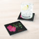 Pretty glass coaster; pink hibiscus bloom on black, for a sleek classic look.