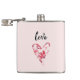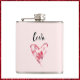 The flask itself is fine. It’s a cheap flask, obviously bought in bulk, however am prepared to overlook that. Given that it is a personalized item, I would have liked to have seen gift boxing instead of the generic packaging. Terrible printing, and/or quality. It’s a cheap, tacky vinyl. It is not cut straight and is also applied in a way that it is overhanging the bottom, causing the glue to catch on items and it will eventually roll and tear, damaging the wrap.