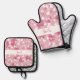 Pretty Pink Love Heart Personalised Oven Mitt & Pot Holder Set