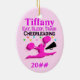 Pretty pink Eat, Sleep, Train Cheerleading personalised and dated Christmas ornament. Thrill your dynamic Cheerleader with this dazzling Christmas ornament year after year. This fabulous Cheerleading design is the perfect gift for Birthdays, Holidays, or any occasion. Your top notch Cheerleader will do back flips and twists for this unique and original Cheerleading Christmas ornament.