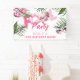 Simple pretty pink Girl's Pool Party Birthday Banner. Design features a simple white background decorated with tropical foliage, flipflops, sunglassess and a fun POOL Party heading!
