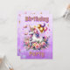 Cute magical unicorn with purple, pink and gold accents surrounded by flowers, butterflies and sparkles. Fairytale theme for a little girl's birthday party. Add child's photo on the back in the personalise area.