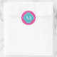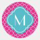 Pretty Pink Quatrefoil Pattern with Monogram Classic Round Sticker