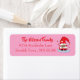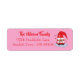 Some charming pink return address labels with the illustration of a red gnome holding a letter in his hand and surrounded by some little hearts . This same design is also available in white and blue-gray.