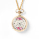 Personalised watch with a rose and peonie flower border. Cheerful and summery. Background is a faux parchment image. Name written in a fancy trendy script font.