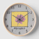 Pretty pink rose doodle, your name, on grey clock