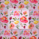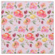 A pretty and feminine pattern of watercolor florals in shades of pink, red and yellow, with foliage, on a soft pink background.