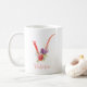 Pretty pink watercolor letter "V", embellished with a delicate watercolor floral bouquet, personalised with name, coffee mug.