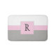 This pretty pink, white, and grey monogram bath mat features a white background at the top with a grey background at the bottom.  There is a pink box in the centre.  Monogram your bath mat using a variety of colours.  Purchase yours today!
