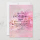 Bridal shower invitation with a photograph featuring a bouquet of pink and white carnations. Set on a dreamy ethereal background.