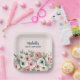Pretty Pink White Floral 100th Birthday Paper Plate