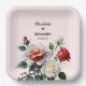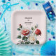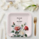 Pretty pink white red roses floral wedding paper plate