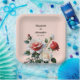 Pretty pink white red roses floral wedding paper plate