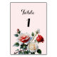 Elegant pretty red and pink white rose floral cottage core wedding table number