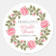 PRETTY PINK WILD ROSES BRIDAL SHOWER NAME DATE CLASSIC ROUND STICKER