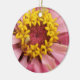 This pretty pendant style ornament features a detailed photograph of a pretty pink Zinnia flower. The photograph was taken using macro photography and shows the vibrant pink petals colour and intricate detail of this beautiful flower. There is customisable pink text on the back for you to type in your own personal message.