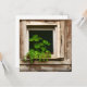 Blank card. Pretty plants sitting on a rustic wood window ledge ai art.
