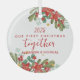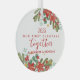 This charming Christmas ornament captures the essence of the holiday season with its beautiful watercolor botanical design. Featuring vibrant red poinsettias, clusters of berries, and lush green pine tree sprigs, it creates a festive and elegant border around the ornament. At the centre, the phrase “Our First Christmas Together” is elegantly scripted, celebrating a special milestone.