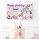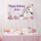 girls pony birthday banner, pretty horse party sign, custom pastel birthday banner, horse girl birthday ideas, cute pony party backdrop, personalised horse banner for kids, pink and purple party decor, girly equestrian party theme, pony party supplies for girls, magical horse birthday decoration