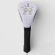 Cute lady's golf club cover done in a lavender and white gingham pattern. Fun graphics of a fuzzy white poodle, decorates the middle of the cover. Personalise the black number to read what you want. Great gift idea. Chose either driver cover or putter cover.
