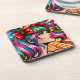 Pretty Pop Art Comic Girl with Bows Coaster