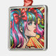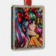 Pretty Pop Art Comic Girl with Bows Metal Ornament